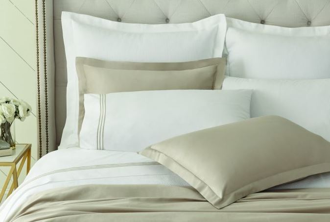 Madison Duvet Cover Set is designed with a triple row embroidered trim on the Flat Sheet, Pillow Cases, Duvet Covers and Shams. 400 TC, 100% Cotton Sateen, Long Staple Single Thread.