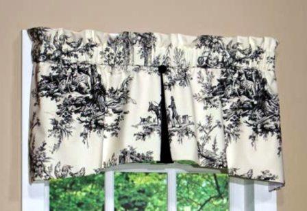 Bouvier is an exclusive design by Thomasville at Home.  This Center Pleat Curtain features scenes from a herders album that are sketched in Black on an Ivory ground cotton duck fabric with inverted pleat in black.  Fully lined with 3" Rod Pocket.  Finished size is 50" wide x 20" long.  Dry Clean recommended.